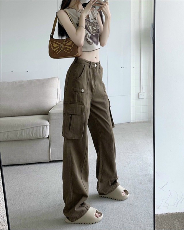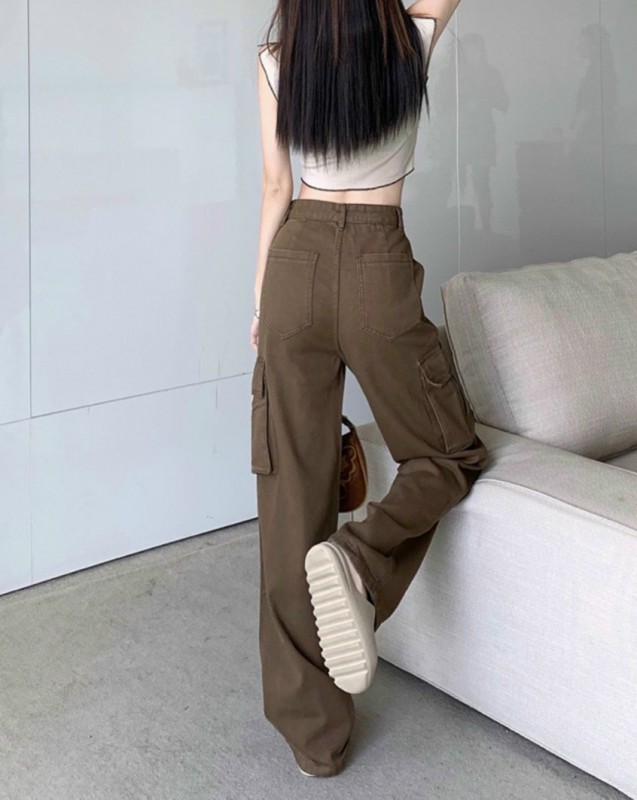 HƯỚNG DẪN MUA HÀNG : Quần Kaki Nữ Ống Rộng Túi Hộp Cargo Phối Gân Giữa Phong Cách Y2K Màu Nâu 568.1