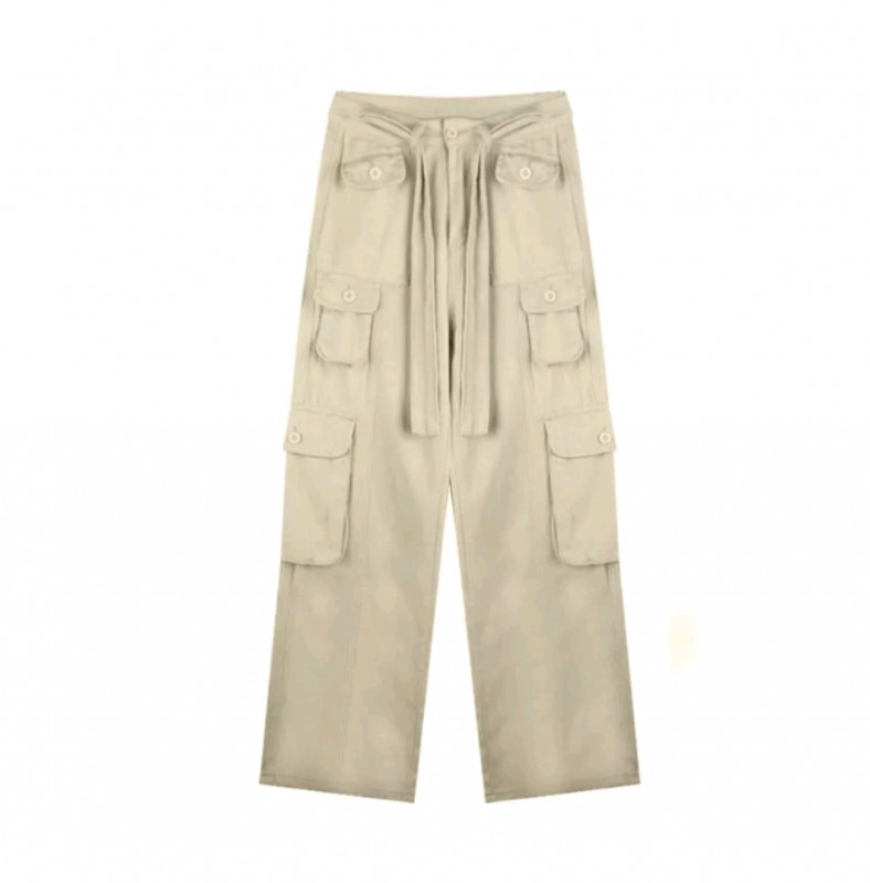 Quần Kaki Nữ Ống Rộng Túi Hộp Phối Dây Màu Kem Lưng Cao Dáng Suông Phong Cách Ulzzang Cực Chất Unisex Nam Nữ 562.2