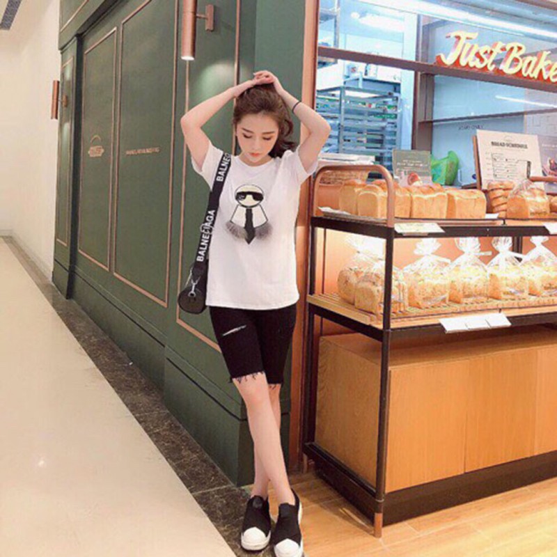 - Những kiểu quần ngố jean trắng, đen như mẫu dưới đây cũng dịu dàng thanh lịch đầy sức trẻ. Bạn có thể diện đồ này đi chơi cùng bạn bè, đi làm ở những ngày cuối tuần tự do. Những set đồ với quần ngố jean như thế này bạn nên kết hợp với những đôi giày thể thao hợp tone màu sẽ giúp bạn trở trên năng động hơn.