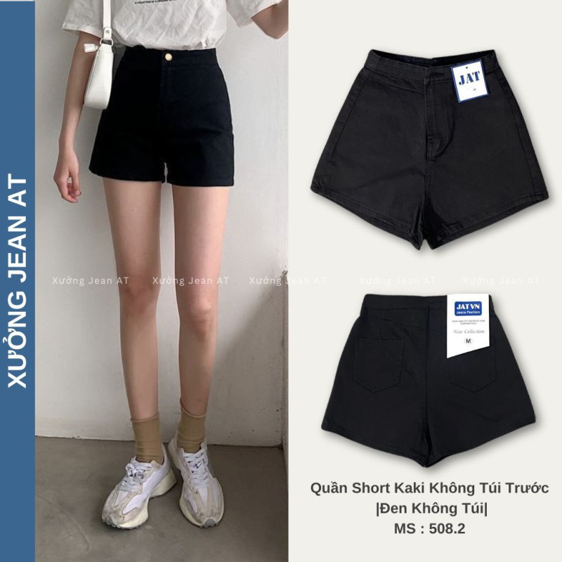 Quần Short Kaki Nữ Lưng Cao Không Túi Siêu Co Giãn Màu Đen Basic 508.2