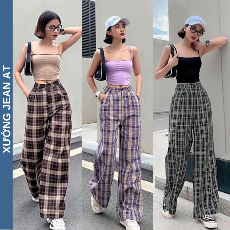 THÔNG TIN SẢN PHẨM : Quần Caro Nữ Ống Suông Rộng