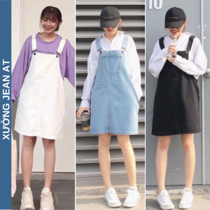 - Một phiên bản khác của quần yếm là váy yếm. Giống như áo liền quần, váy yếm cũng phổ biến không kém vì nó mang đến cho các cô gái vẻ ngoài nữ tính và dịu dàng. Sự kết hợp giữa quần yếm và váy để thỏa mãn người hâm mộ váy.
